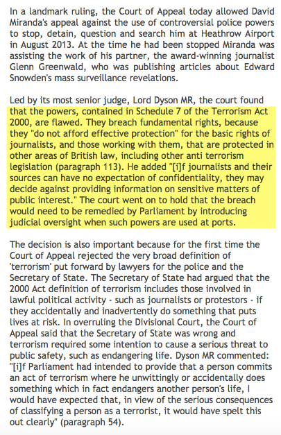 : Huge: Appeals Court rejects UK's effort to criminalize an act of journalism as "terrorism."